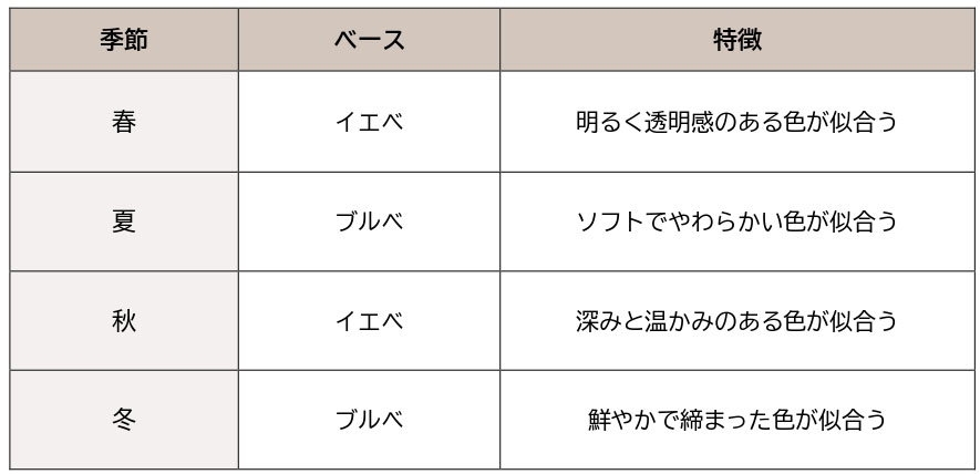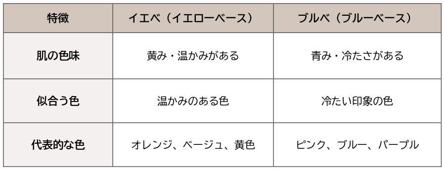 • ・イエベ・ブルベそれぞれの特徴と似合う色