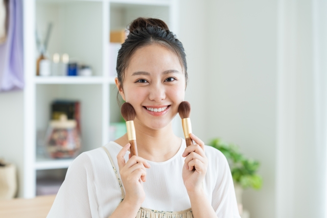 ブルベさんに似合うメイクは、青みや紫みを帯びた色が基本です。ファンデーションは、ピンクやブルーのアンダートーンを持つものを選ぶと肌に馴染みます。チークはピンクやローズ系、アイシャドウはブルー系やパープル系、グレーなどが顔色を美しく見せてくれます。