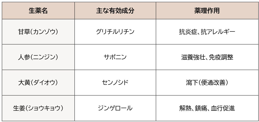 それぞれの生薬は単独でも使用されますが、複合的な効果を得るために漢方処方では複数の生薬を組み合わせて用いられることが多いです。