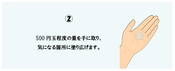 今回は手の甲で試してみたため、500円玉サイズより少し少なめに手に取ってみました。