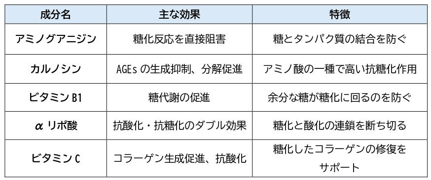 ▼主な抗糖化成分と効果